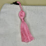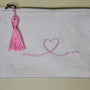 La pochette è decorata con il ricamo di un cuore rosa e dalla nappa coordinata con il colore del ricamo.
