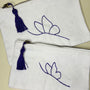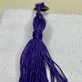 La pochette è decorata con il ricamo di una farfalla viola scuro e dalla nappa coordinata con il colore del ricamo.